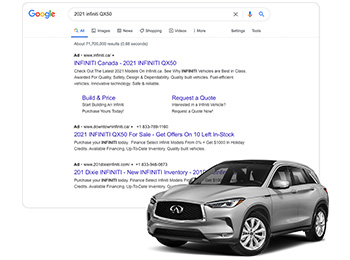 With over 17 years of automotive experience, innovative technology and expertise in online marketing, EDealer is proud to be Infiniti Canada’s Certified Website & Digital Advertising Provider.