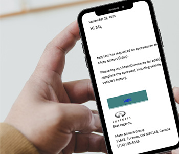 Customers who are interested in a trade-in can submit comprehensive details and images right from their mobile device. For participating vAuto retailers, trade details submitted through MotoCommerce will flow into your vAuto dashboard automatically for an added layer of deal working efficiency, at no additional cost.