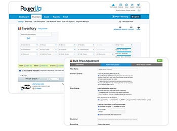 - Vehicle Pricing: Pull Was/Now pricing with automated bulk price adjustment rules.