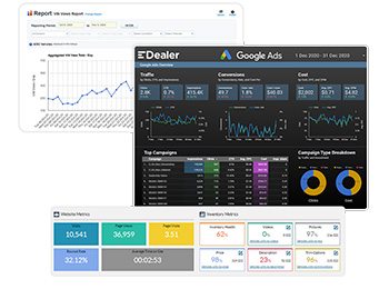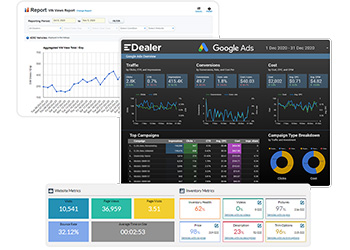 Every dealer receives access to our standard Dashboards, where you can access real-time website analytics and lead reporting along with on-demand inventory metrics and enterprise-level support. We will create your own Google Analytics views and dashboards – and provide you your dealer-access – for greater transparency of your data. We also have advanced reporting available with our Traffic IQ product.